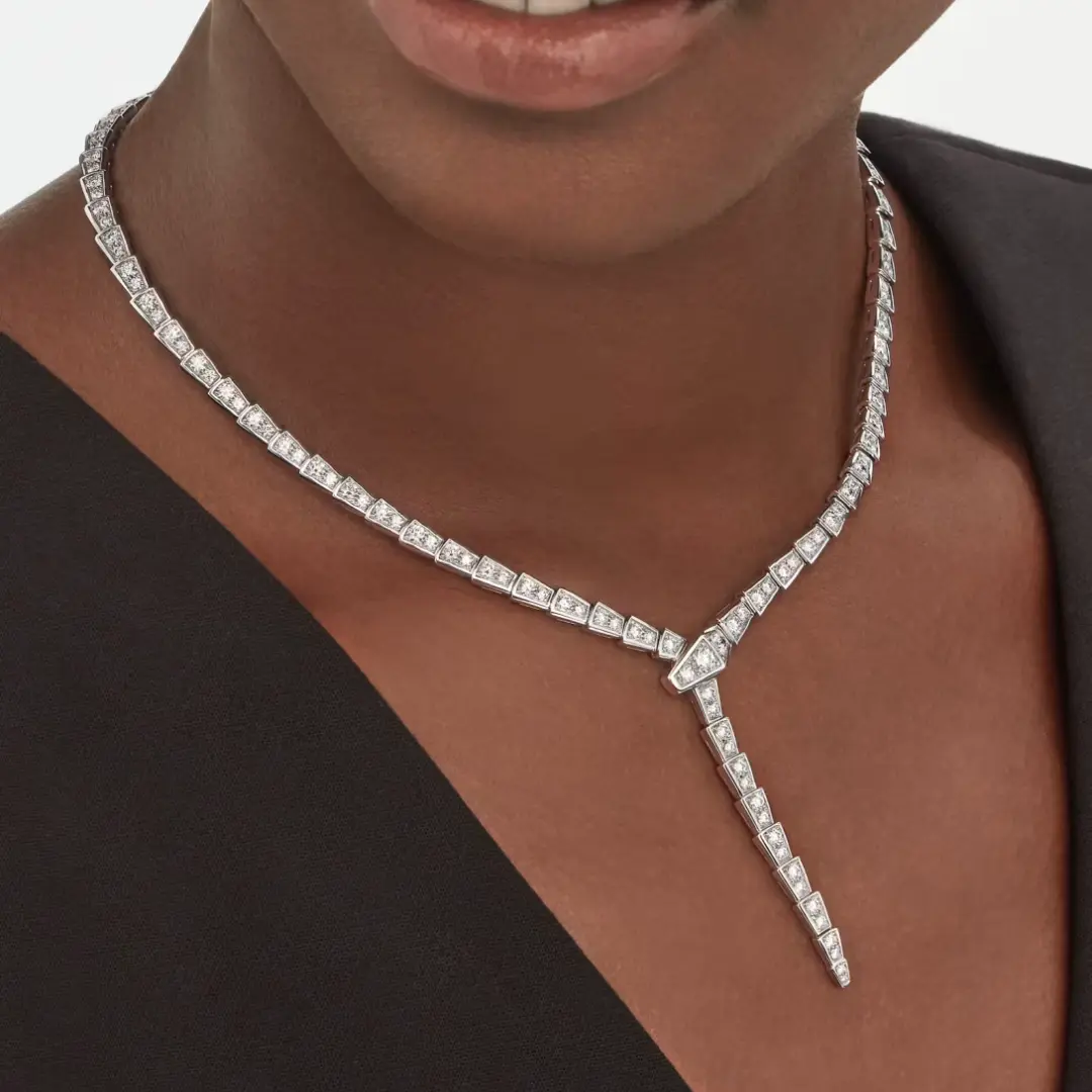 The Bvlgari serpenti viper necklace replica is one of the most recognizable high jewelry silhouettes.